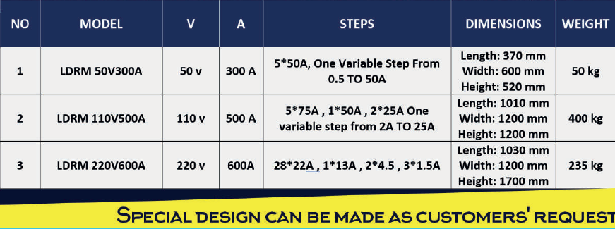 Load Bank DC Specifications